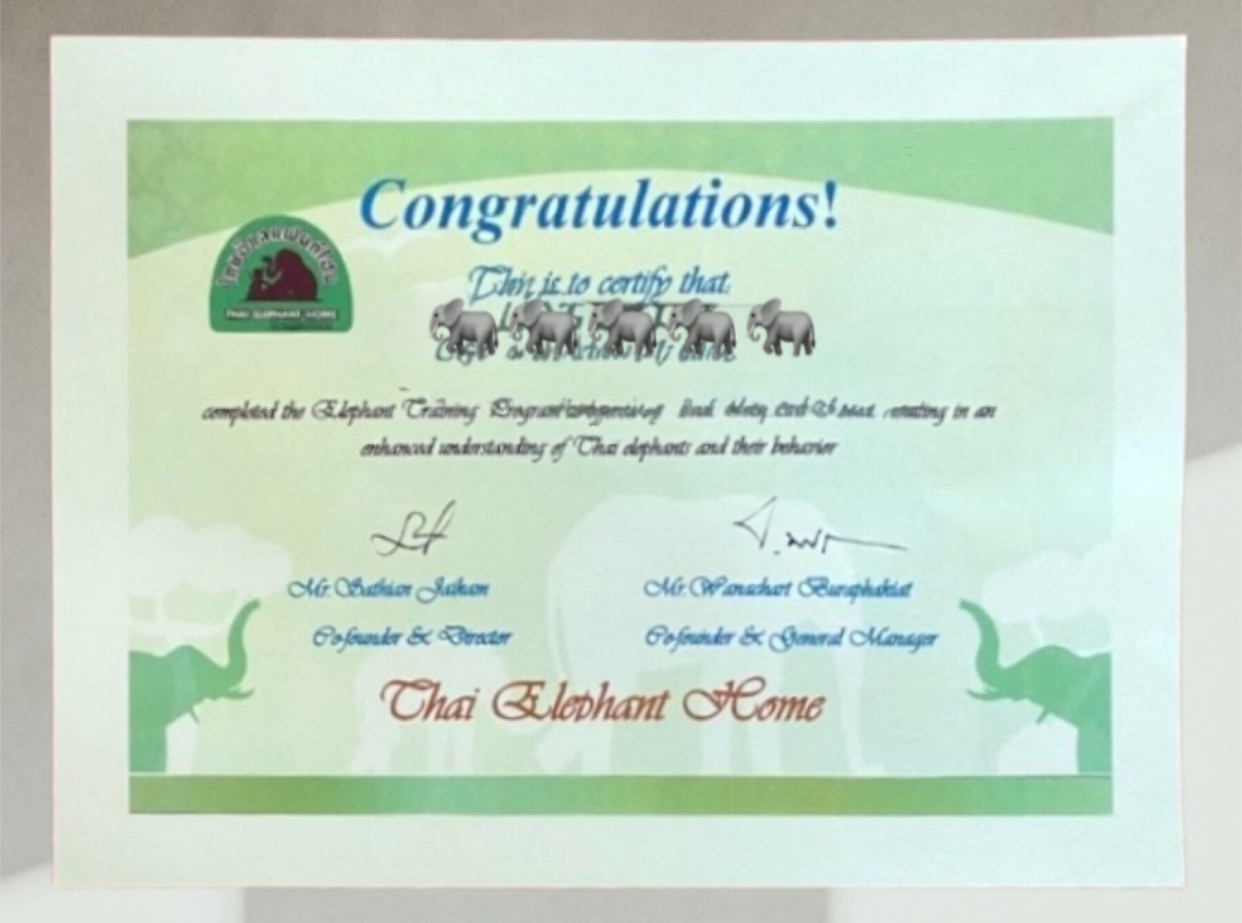 ※この免許証はタイエレファントホーム独自のゾウ乗り修了証明書であり国家資格ではありません。
